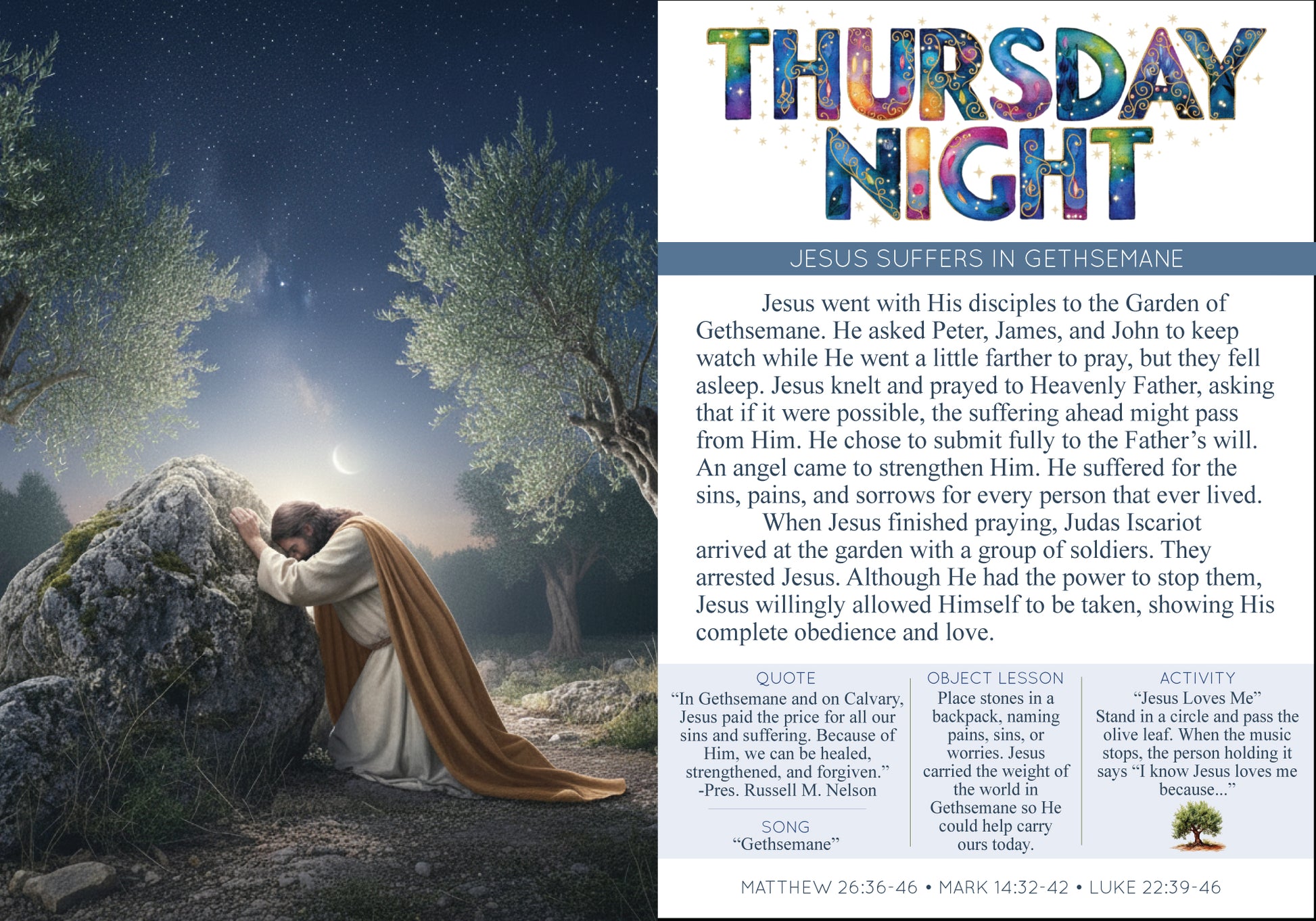 Thursday night- Jesus suffers in Gethsemane